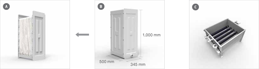| Description | Membrane element | Unit box | Air diffusing module | Air inlet port | Permeate outlet port |
