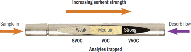 Multi- bed sorbent tubes and cold traps allow a wider range of analytes to be adsorbed than the single - bed equivalent. They are trapped in one direction and desorbed off in the opposite direction to avoid irreversible binding of compounds to stronger sorbents.