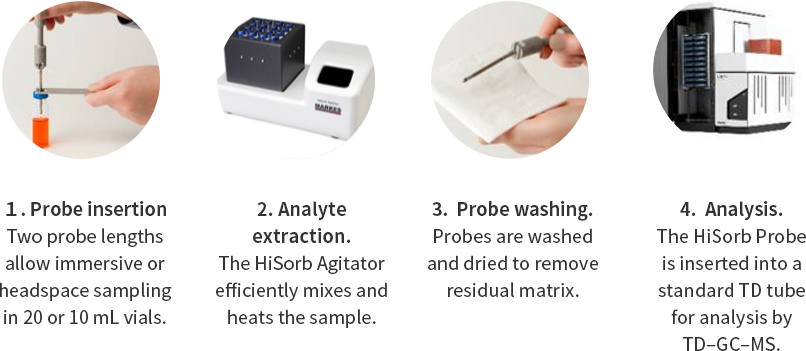 - - HiSorb can be used for immersive or headspace sampling of liquids and solid samples.