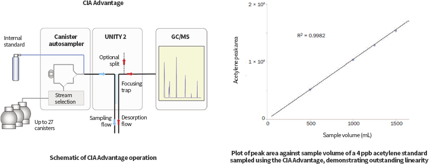 Cryogen-free automation for high-performance canister & bag analysisCIA Advantage™ is an advanced system for the automated analysis of VOCs in canister air and gas. It has multiple-canister capacity and operates cryogen-free.