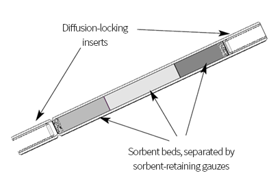 Figure 2: SafeLok sorbent tube schematic showing the diffusion-locking inserts at the ends of the tube.